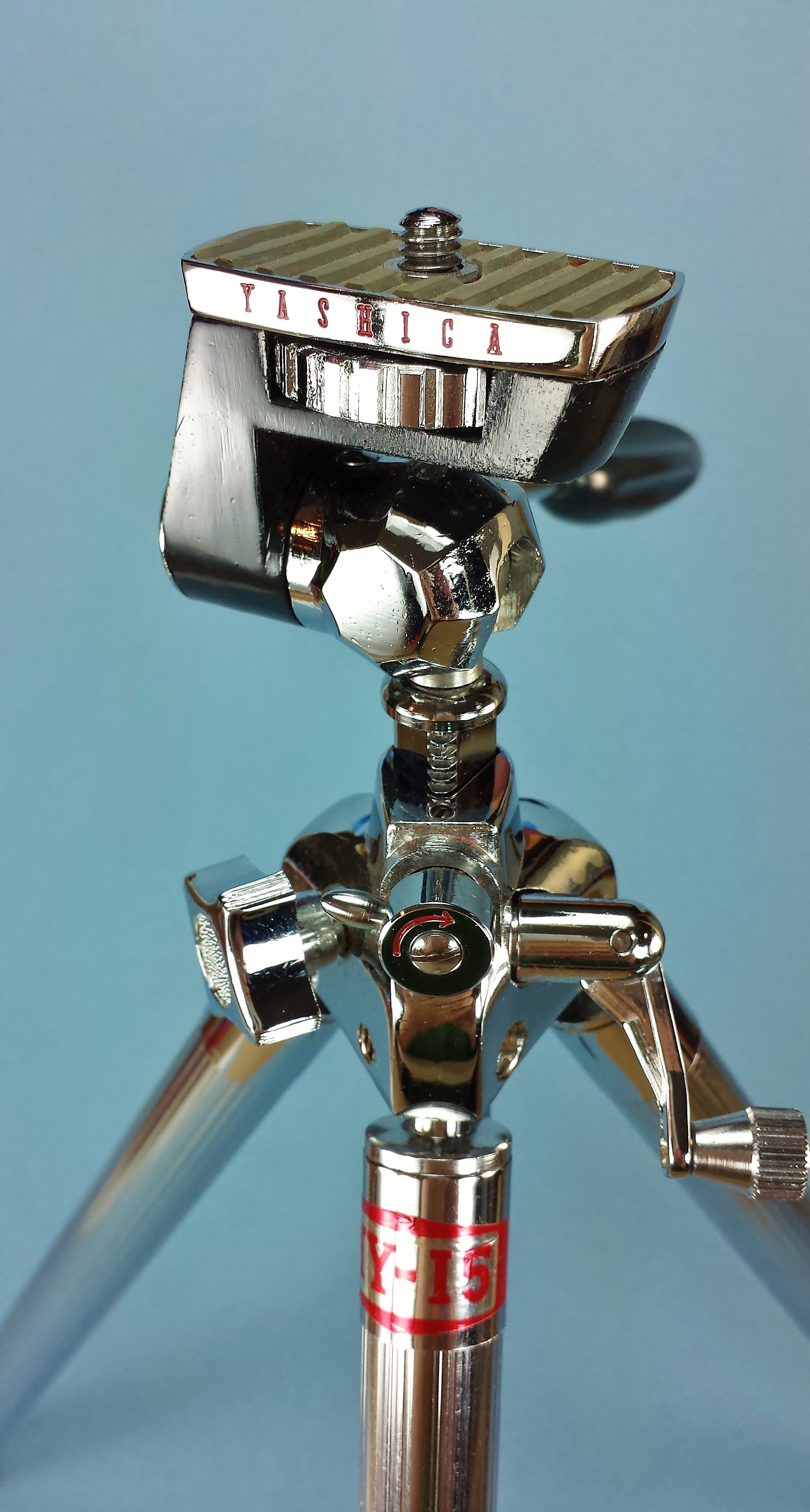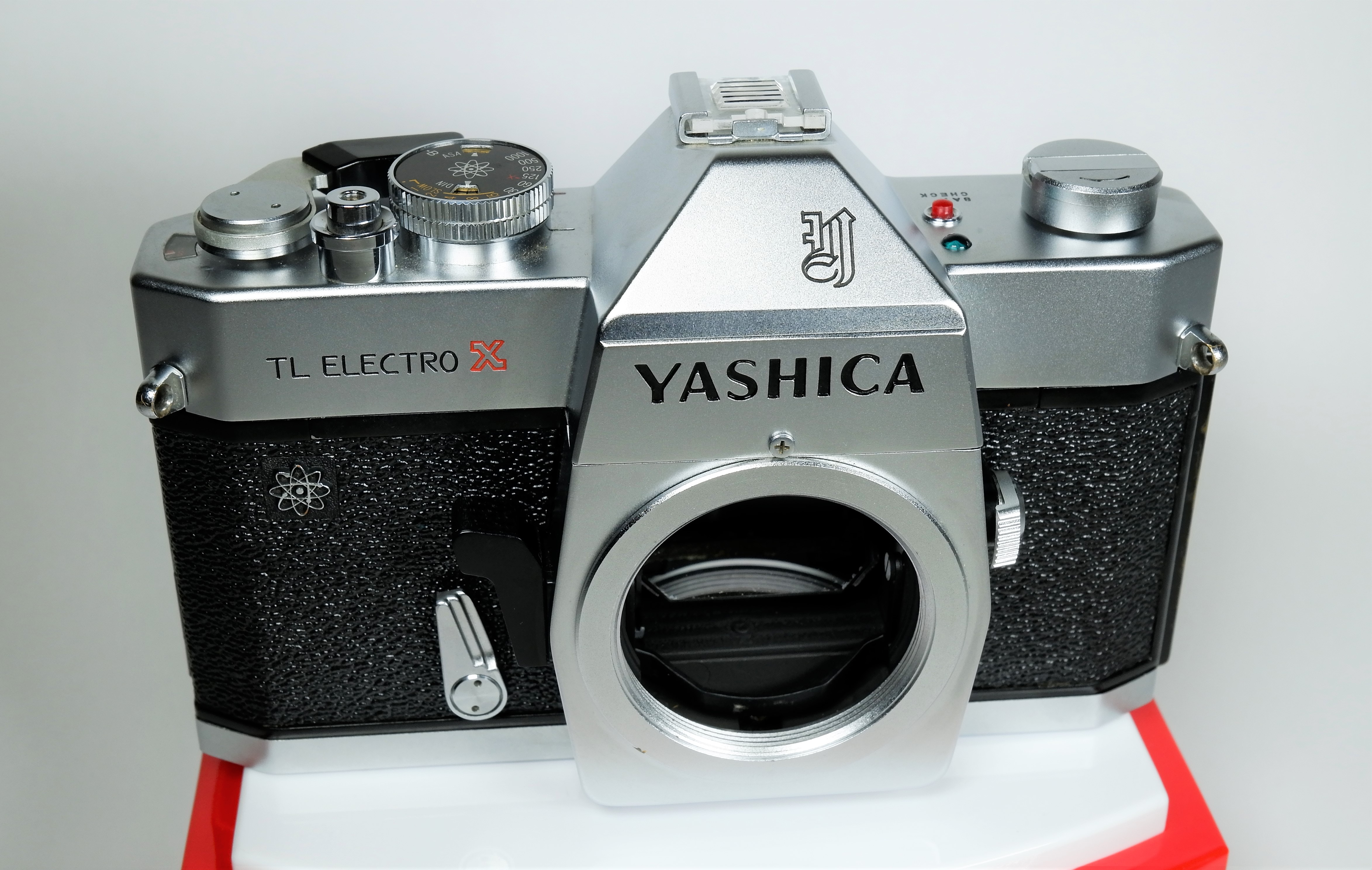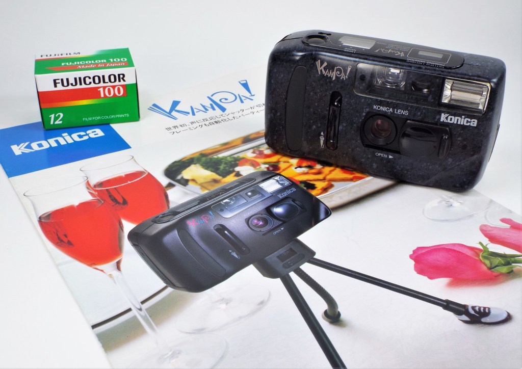 Yashica TL Electro X from 1973.Yashica catalog from 1973.Minolta Maxxum 7000 from 1984.Yashica A presentation box 1964.A Yashica chrome tripod from the late 1950s.Konica Kanpa! camera set from 1984.
