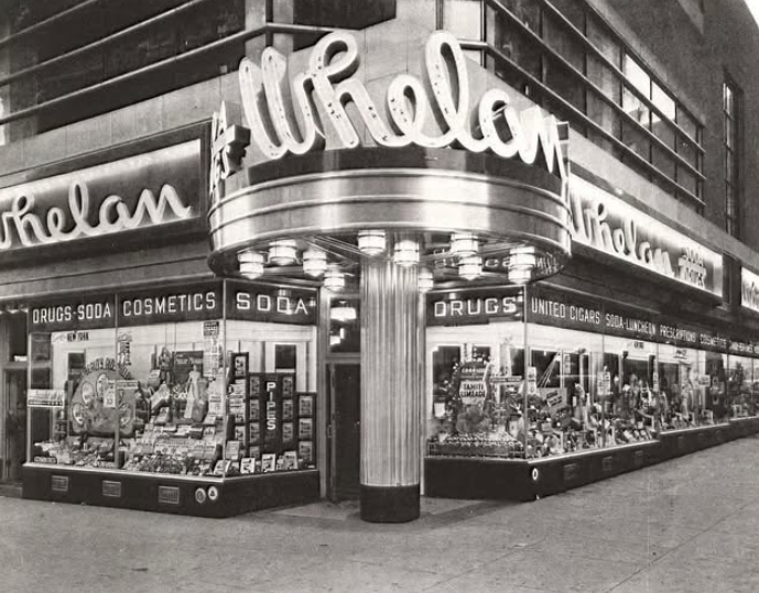 Whelan Drug Store on Long Island, New York. This one was in Hicksville (just north of Levittown, where I grew up). Same family name but no direct relationship. They were all over New York, and there was even one in Times Square.