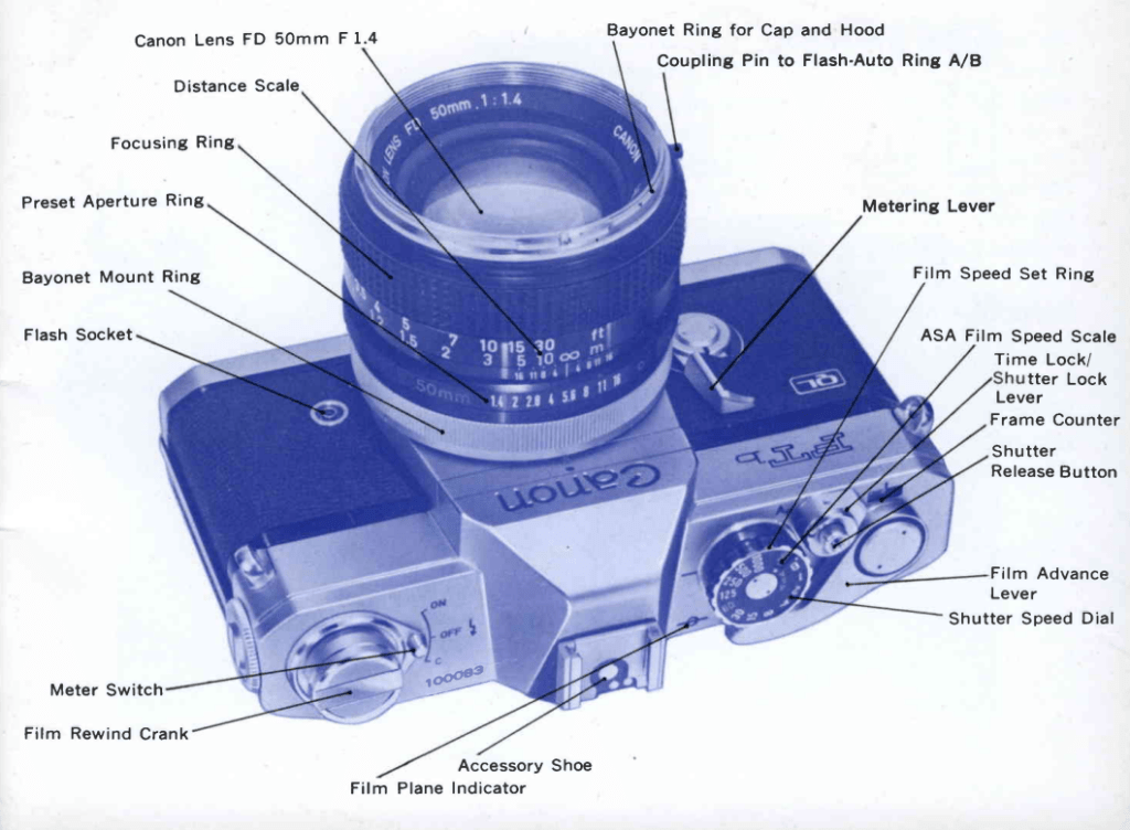 A 35mm SLR from Canon in the mid 1970s. It’s a close cousin to the more famous Canon F-1.