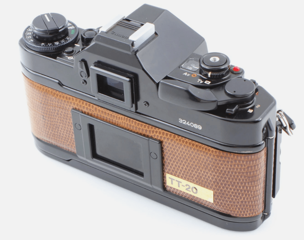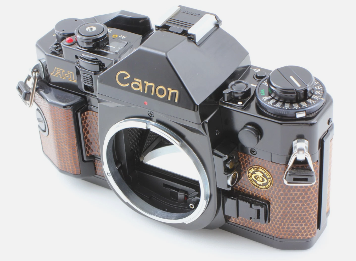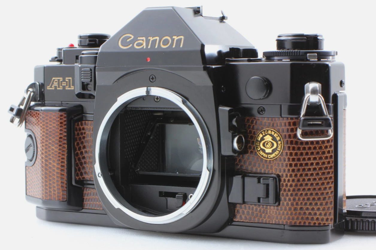 From what I understand, Canon Japan may have authorized a third party to produce this limited-edition A-1 to celebrate the 20th anniversary of the Japan Camera Show in 1979. Other similar special editions were also made for Pentax and Minolta, and possibly others, although no concrete evidence exists.