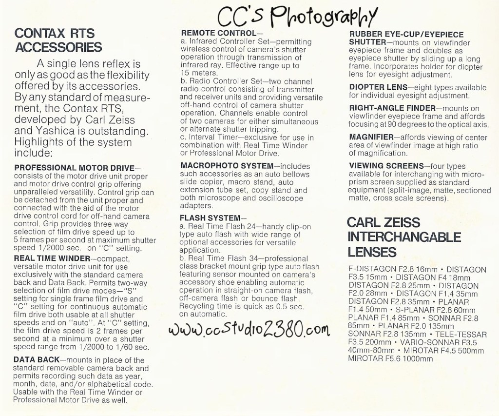 Some of these accessories weren’t fully developed at the time this brochure was published and I’m far from being an expert on which lens was or was not available. I’ve never looked closely at the Carl Zeiss lens line developed for and with Yashica.