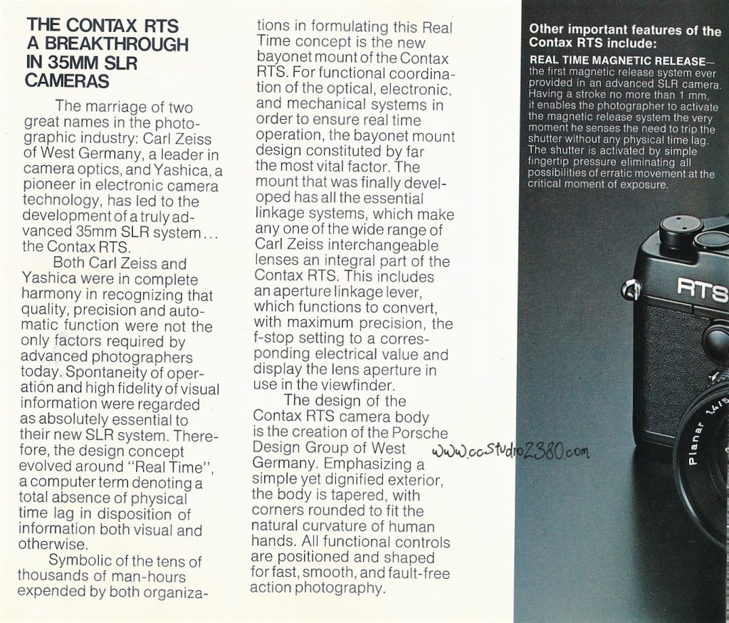 This scan (below) is from a Yashica marketing brochure from early 1975. There’s been so much misinformation about the origins of the RTS that I thought it would be best to go to the source to get the facts straight.