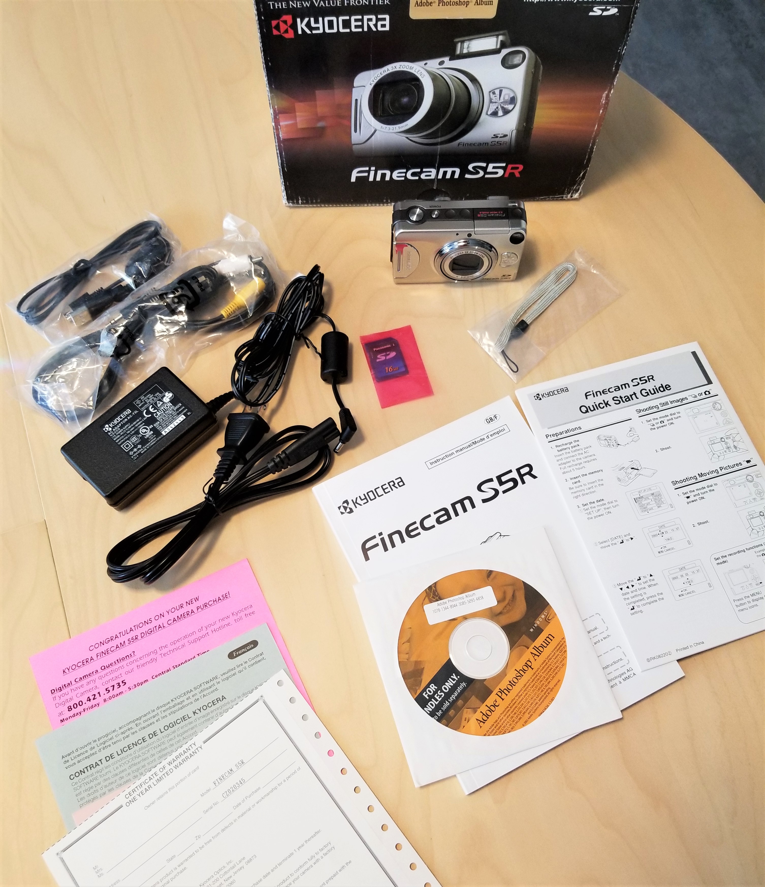 The Kyocera Finecam S5R is and was a pretty sophisticated digital when it was released in mid-2004 at an opening price of a whopping $499.99! The Kyocera lens is a 7 element in 6 groups design and has a 35mm equivalent range of 35-105mm. It feature Kyocera’s new “RTUNE” Image Processing Technology. It’s also capable of up to 3fps in full auto mode. More can be found at https://americas.kyocera.com/press-releases/press-releases_20150319896.htm