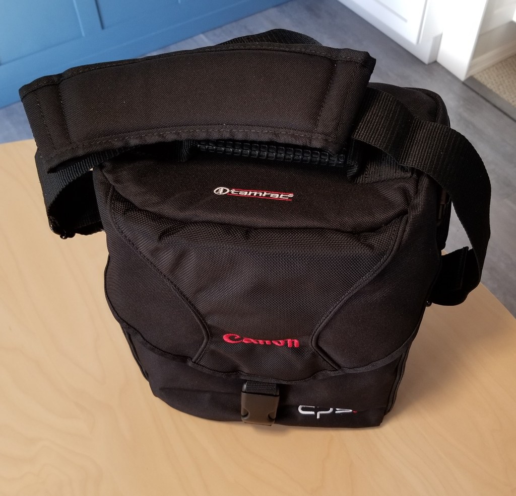 It’s a rather large shoulder bag that can hold a “ton” of gear including lenses, SD and CF cards, batteries, and everything in between. It’s brand new and has never been used. I have another one that I do use.