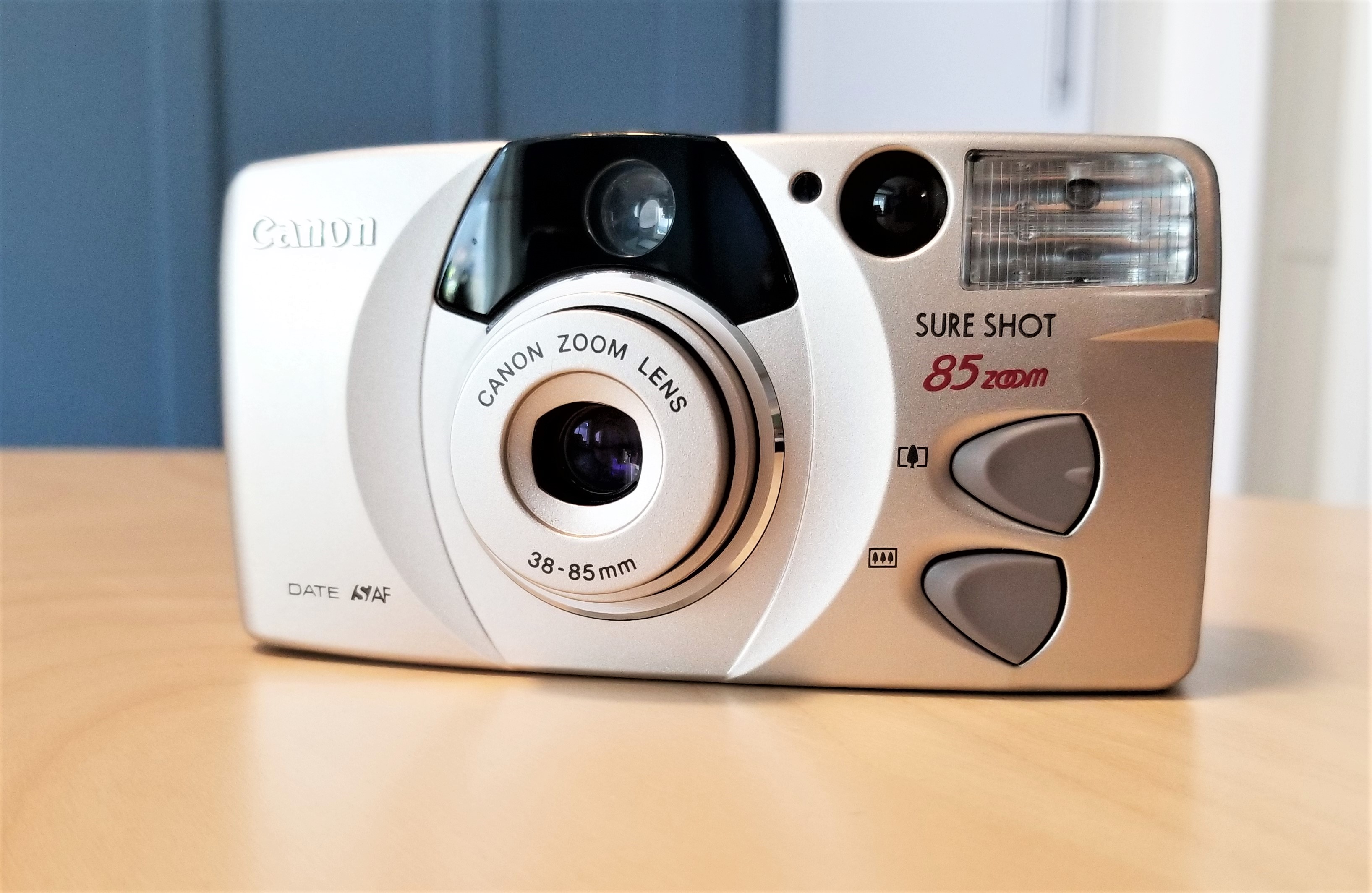 Last but not everything, this like-new Canon Sure Shot 85 Zoom Date 35mm compact point & shoot film camera with a crazy sharp lens.