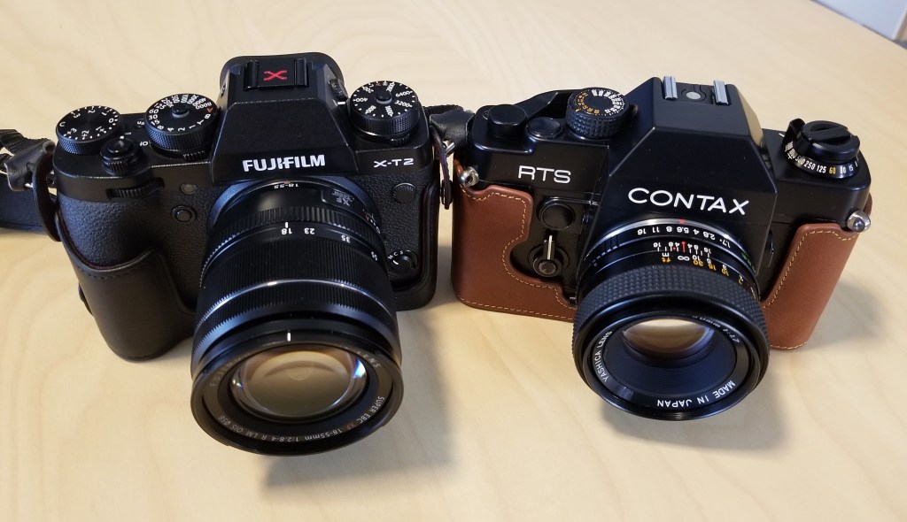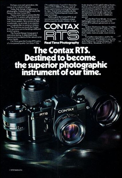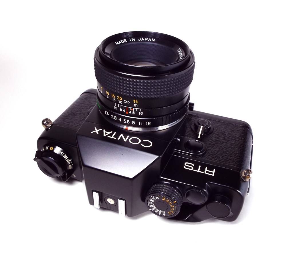 The Contax-Yashica RTS, Real Time System, was jointly developed by Yashica and Carl Zeiss, with the design originating from Porsche. The camera features fully automatic through-the-lens electronic exposure control; select the proper film speed (ASA, ISO) and the desired aperture (f-stop), and the camera selects the appropriate shutter speed. It’s also a fully manual camera, with the user setting the shutter and aperture values. It was a camera I was initially interested in when I was looking to replace my first SLR, the Yashica TL Electro-X, in 1978 when I was stationed in the Navy in Japan. If I remember correctly, the Navy Exchange stores didn’t have a large selection of Contax cameras, so my choice quickly became the Canon F-1 over the Nikon F-2.