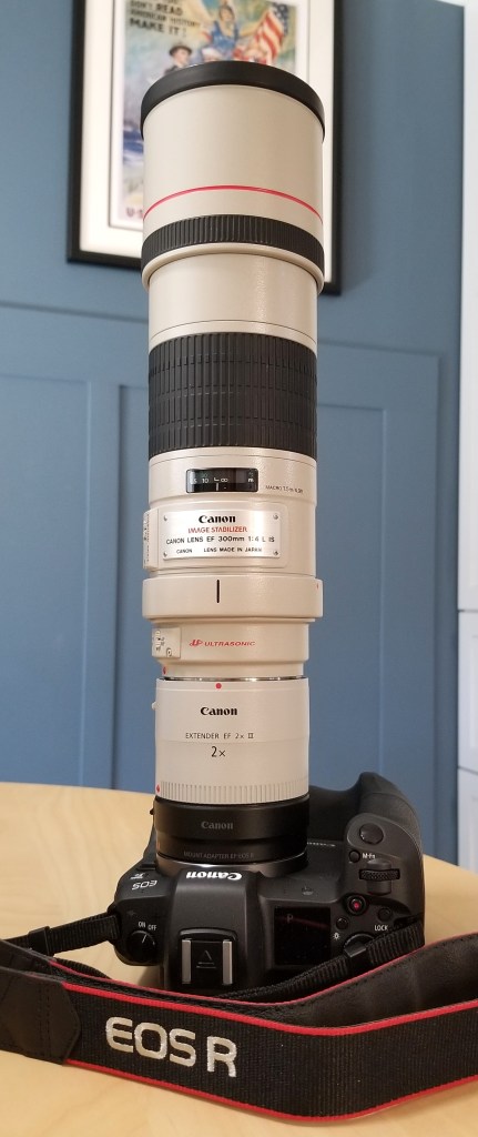 Canon EF 300mm f/4 L IS USM lens with a Canon Extender 2x III. 600mm of reach!