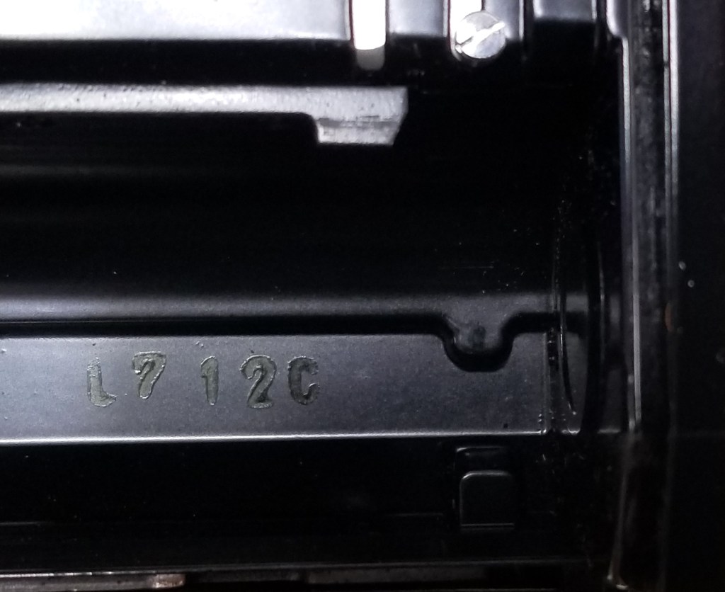 Canon stamps what is believed to be a factory date code inside the film chamber of every camera made. This code indicates that it was assembled in 1971 (L), July (7). The following two numbers are an internal code, as is the ‘C’ – lost in time as to their meaning.