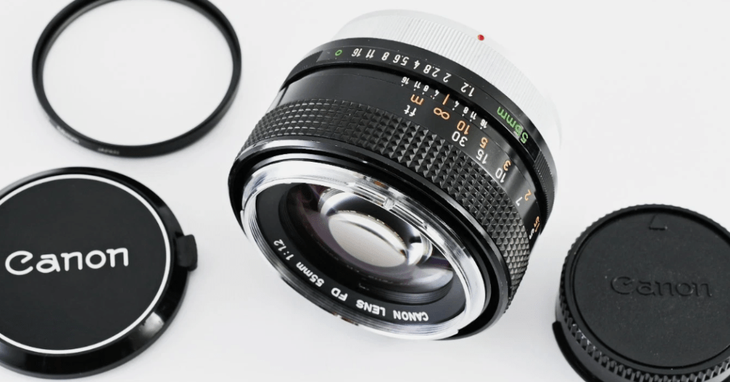 This famous early Canon lens is super fast at f1.2. It’s also not a lens for the faint of heart. It weighs 19 oz (540 grams).