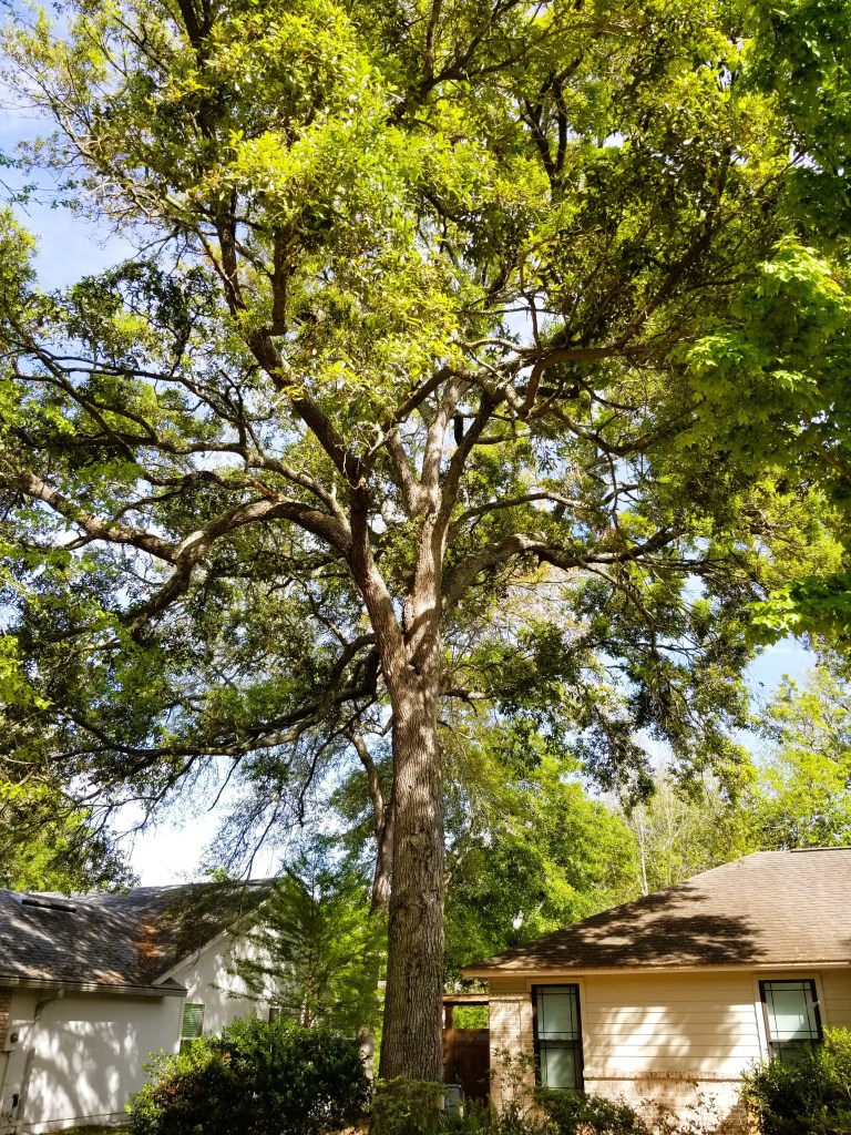 Most people would think that a southern oak like this would be covered in Spanish Moss and look more like a “traditional” live oak. It’s not a live oak, and I’m not 100% sure which oak variety it is. I do know that there isn’t a hint of moss on it – as if it’s not the proper host.