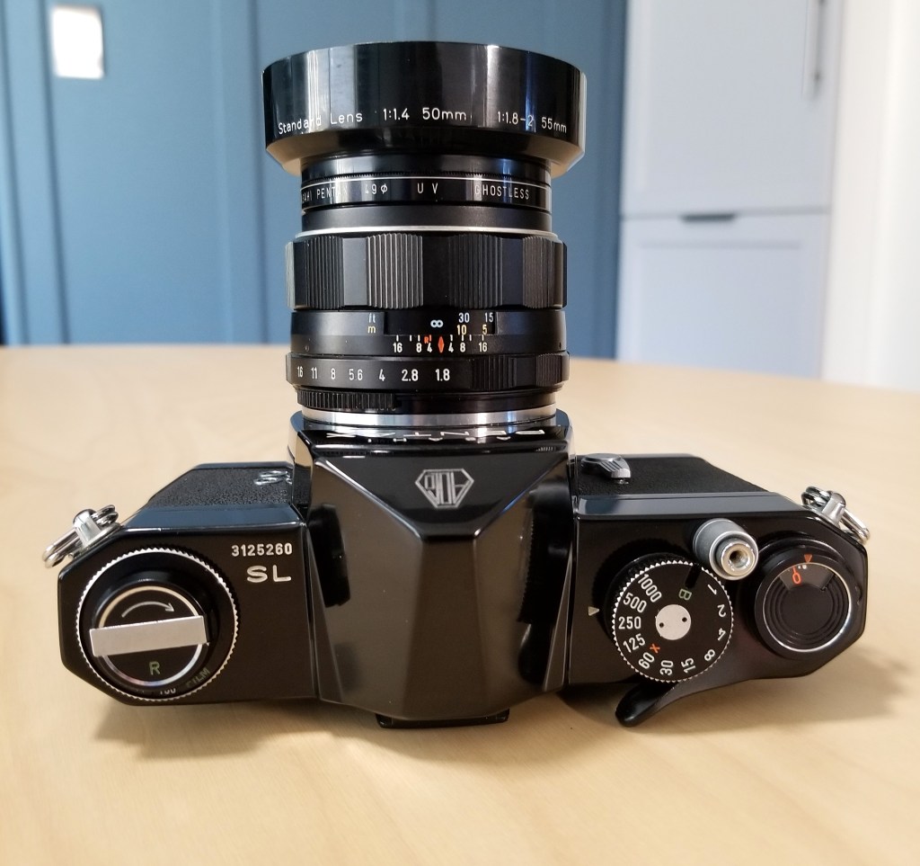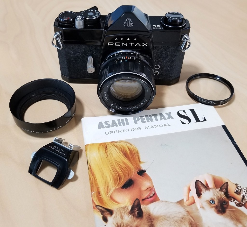 My gorgeous Asahi Pentax SL in the piano-black finish. Shown here with its Super-Takumar f/1.8 55mm lens.