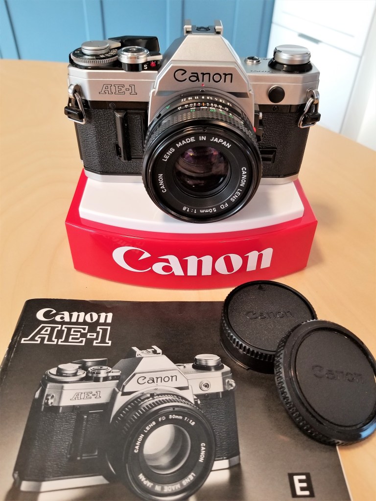 Just in time for your holiday shopping and gift-giving, I have another beautiful Canon AE-1 from my collection. This one comes with a sharp Canon New FD 50mm f1.8 lens. It’s been fully serviced with new light seals and a new mirror bumper pad and it’s been lubed to ensure that there’s no squeal or squeak from the mirror assembly (commonly known as shutter squeal).