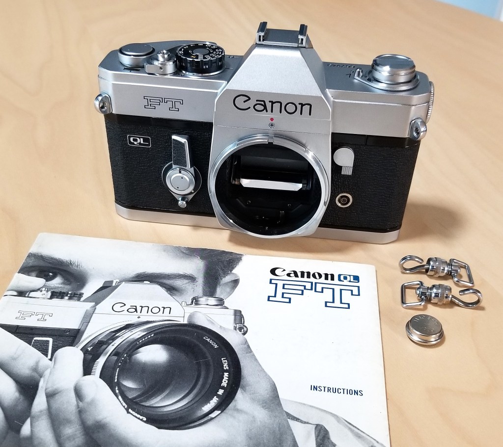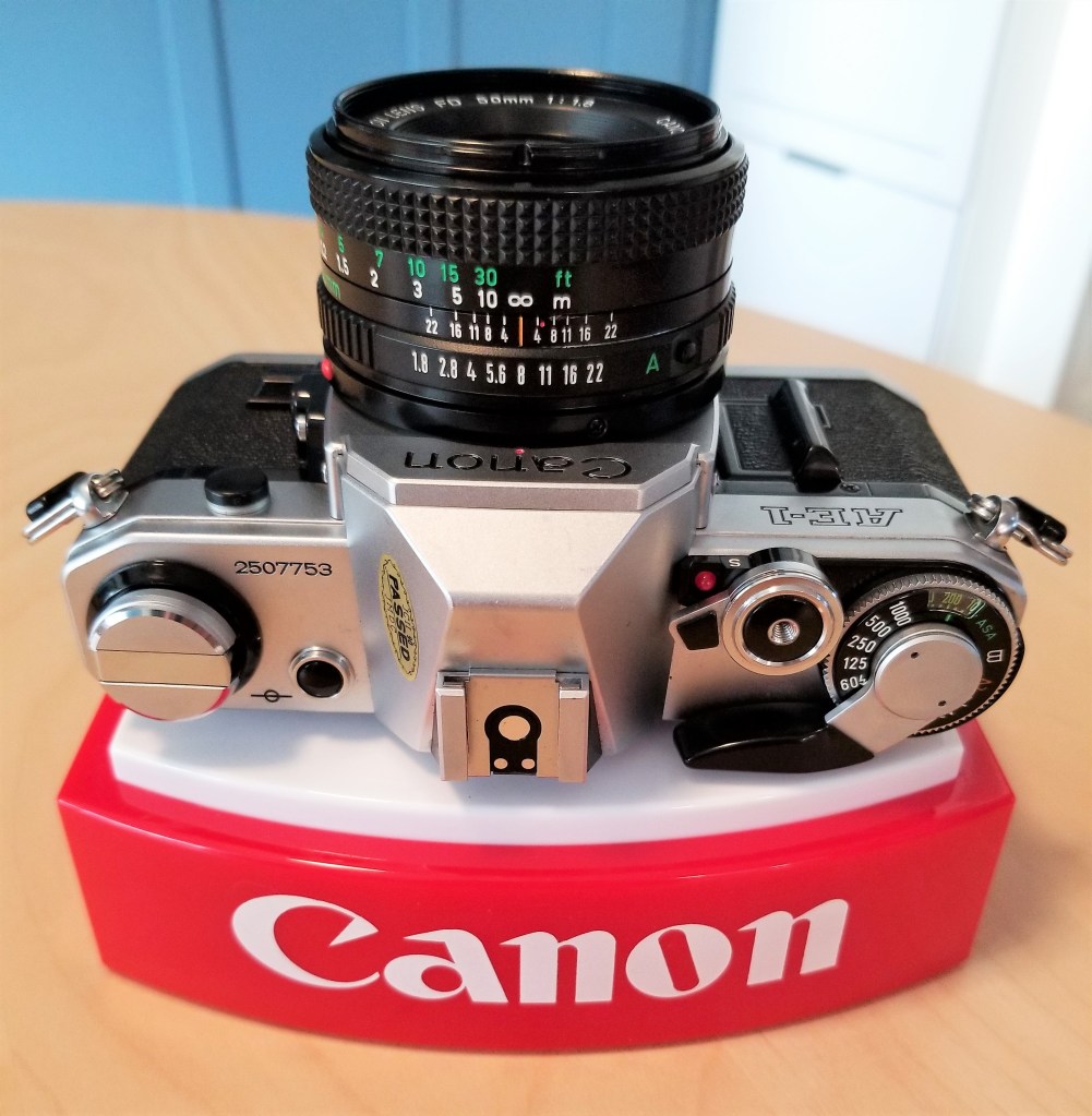 I knew the camera was untested (I asked the seller and they said that they didn’t have a battery) so I knew that going in. BTW, the 6v A544 batteries that power the A-1 are quite common and available in stores and online. After checking out the camera with a fresh battery I discovered that the light meter display wasn’t working. The shutter speeds sounded accurate but without knowing if the meter was responding I wouldn’t have been able to trust the camera in full auto mode. The camera also had the infamous Canon “squeal” that happens whenever the mirror assembly’s lubrication dries out over time and from sitting unused for long periods. The squeal is not caused by the shutter as some people believe.