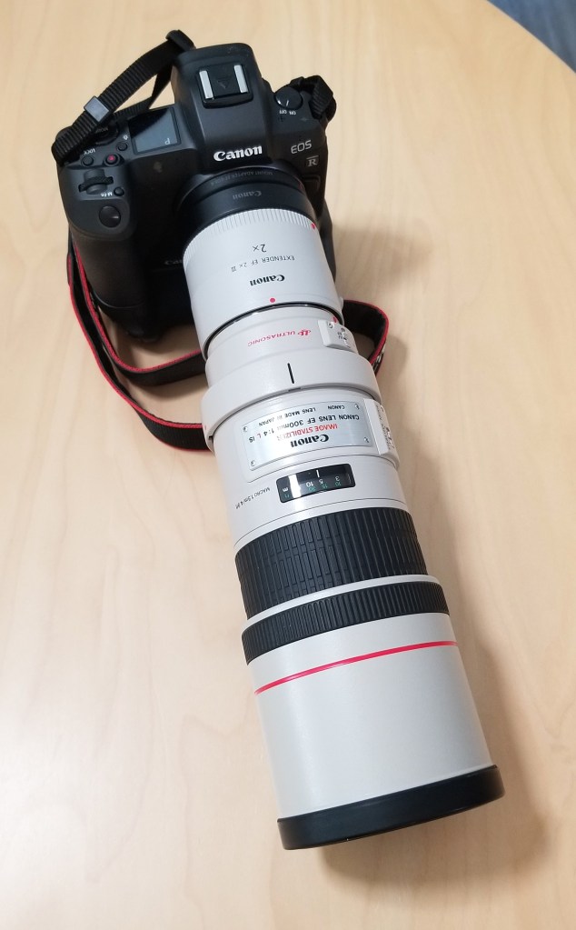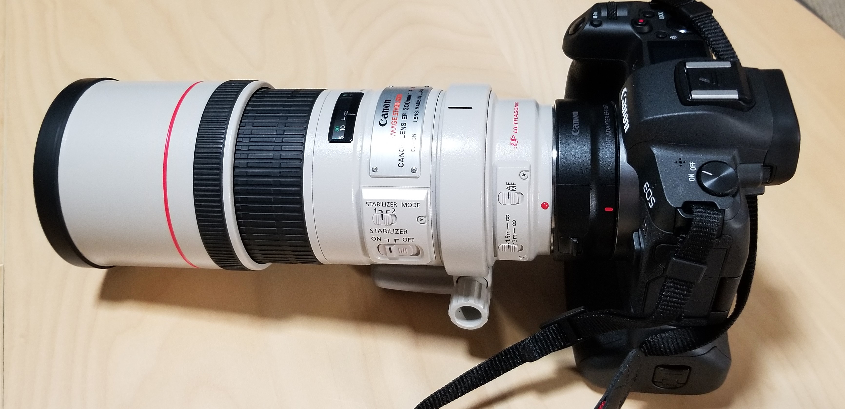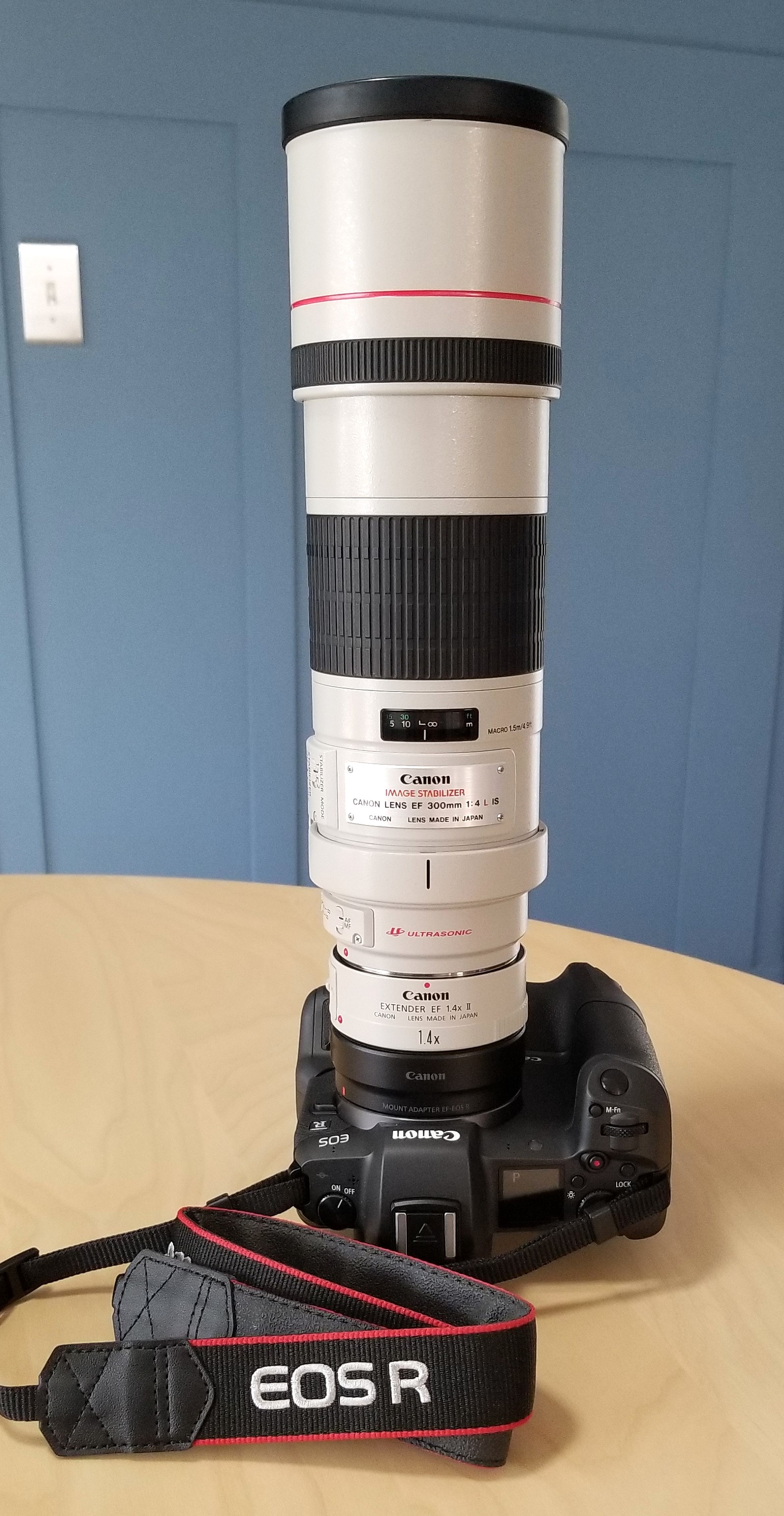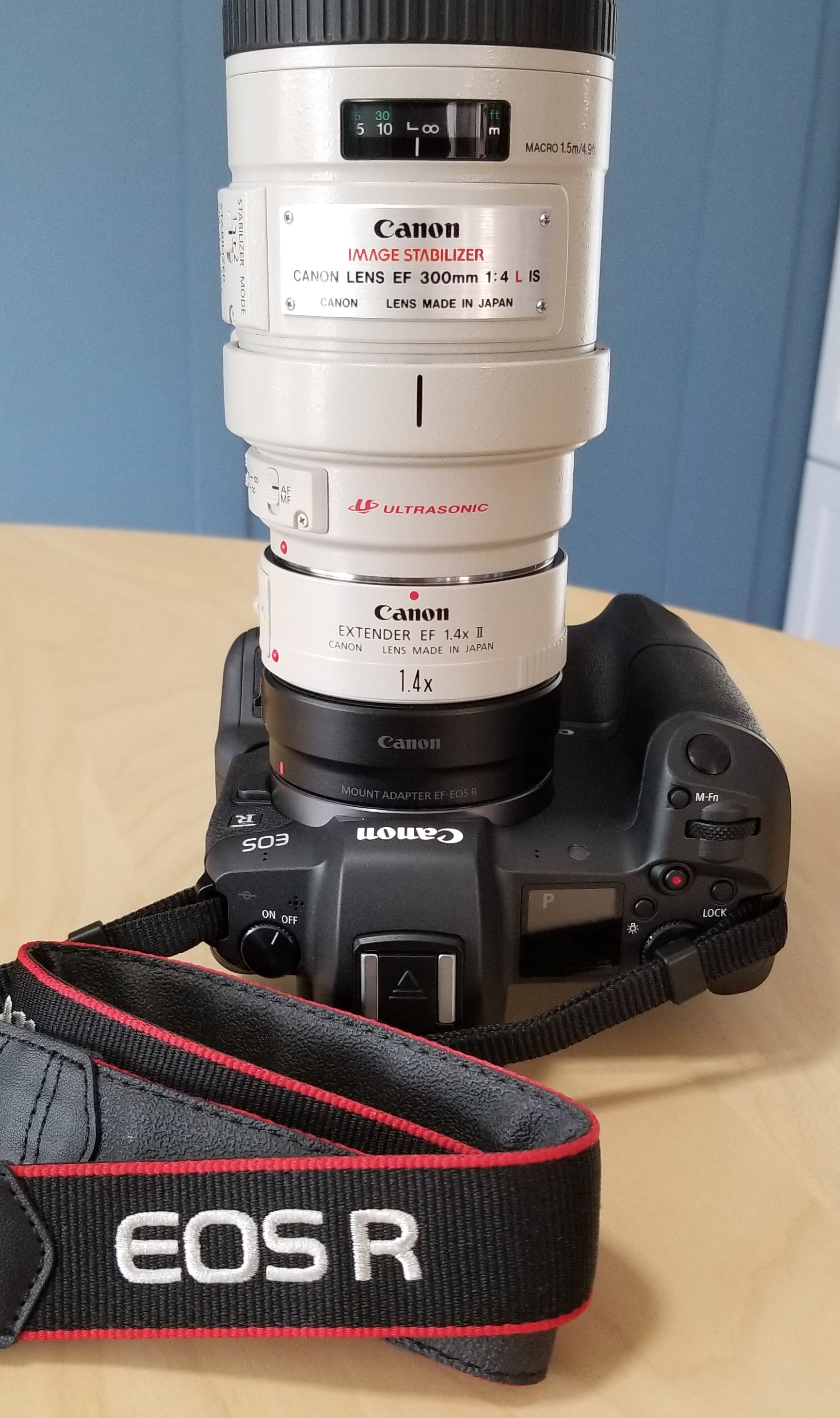 I enjoy using my Canon EF 300mm f/4L IS USM lens on my Canon EOS R mirrorless digital camera.