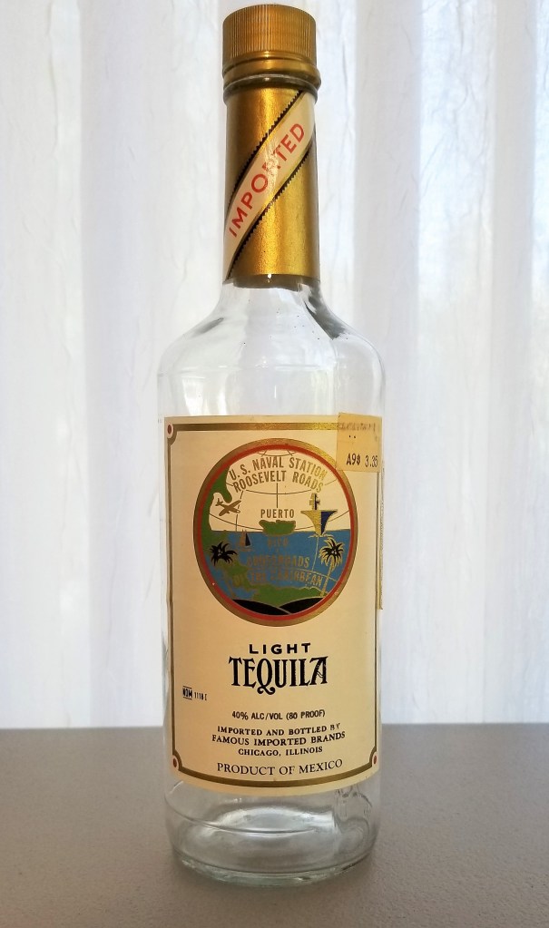 While going through our liquor cabinet I discovered this unique bottle from the package store at the Roosevelt Roads Naval Station. We purchased this bottle back in 1989 or so.