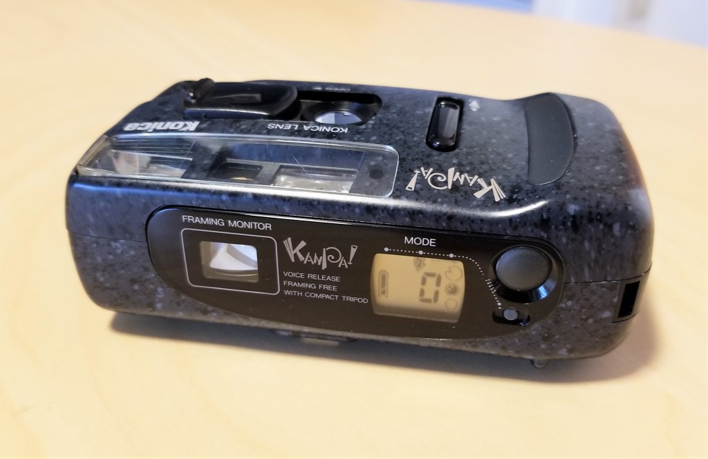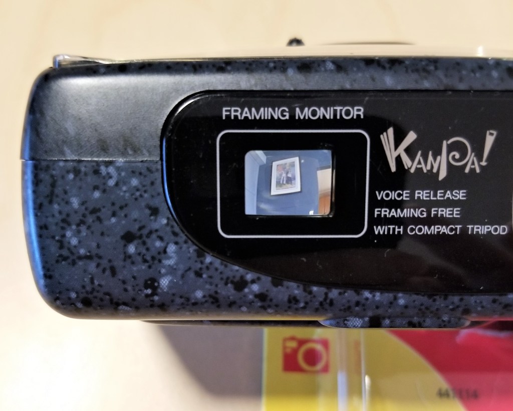 Designed to be used in a group setting for automatically tripping the electronic shutter when someone or everyone yells “Kanpai” (Cheers) or whatever you want to yell out – cheese works too. When used in a street setting the camera can conveniently sit in your lap or just hang around your neck and frame your shot with the top-mounted finder. I guess you could just yell “Hi!” at everyone without touching the shutter button and then capture their reaction (I’m not that brave).