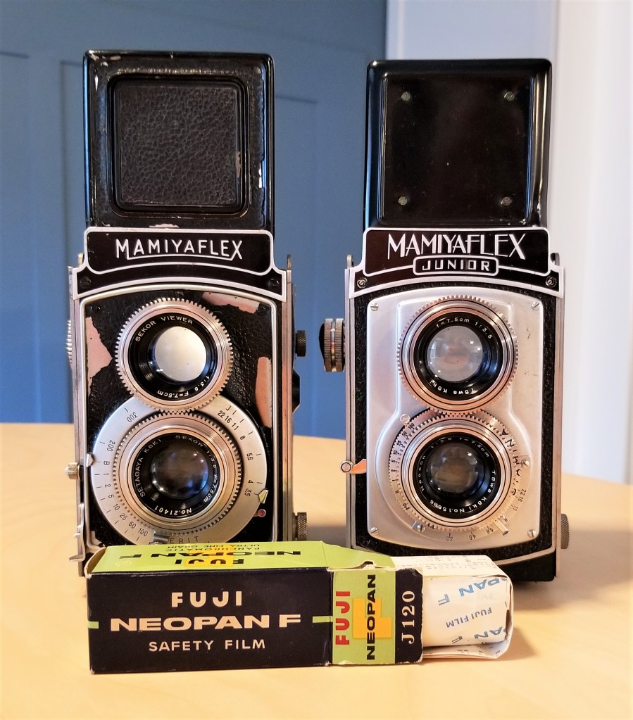 Mamiya C33 Professional, Mamiya 23 Standard with a 6×9 back, and Mamiyaflex Model C2 Professional.