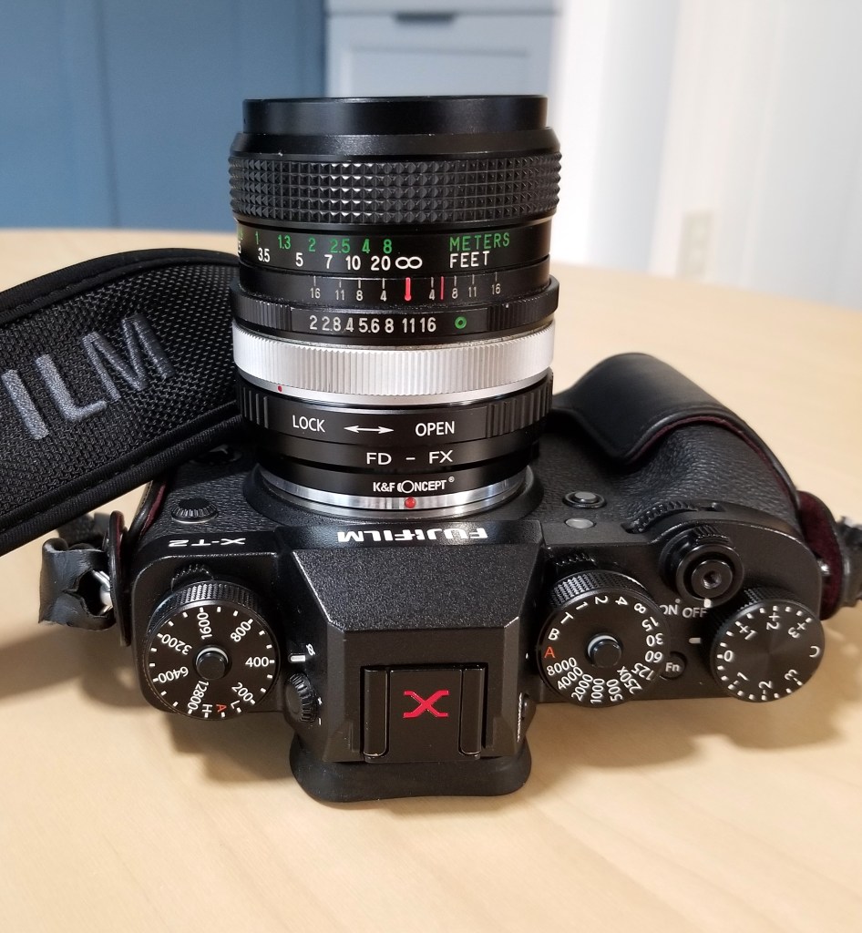 It’s a heavy lens—288 grams (10.2 oz.) for its size—with lots of glass and brass. I couldn’t find the lens details, so I don’t know how many elements and groups it has. My guess is it has coated optics, as the later lenses have ‘MC’ on the front filter ring. It accepts 55mm filters.