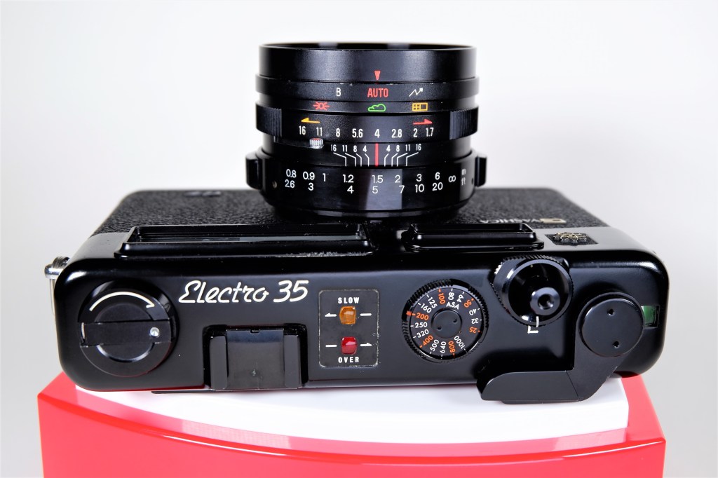 The Electro 35 GT features a fast f/1.7 lens which makes this camera ideal for low light situations with fast film. The Yashinon DX lens is super sharp too and at 45mm it’s perfect for 35mm photography.