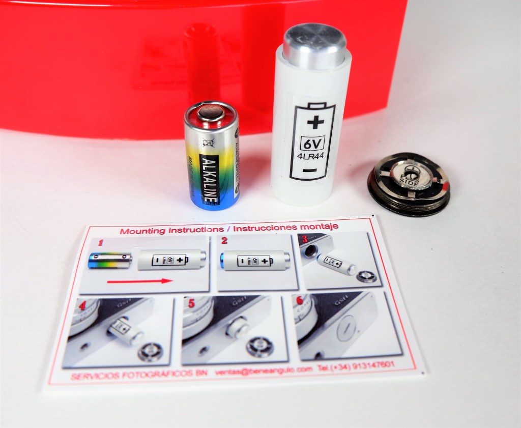Here is the new battery with the adapter. About $13 from a seller in Spain. It allows you to use a very common alkaline battery since mercury batteries are banned.