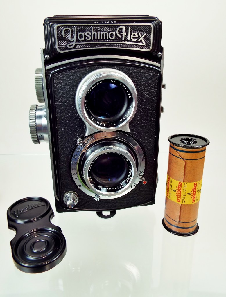 This gorgeous camera was the first to carry the company name – Yashica Flex made in 1954.