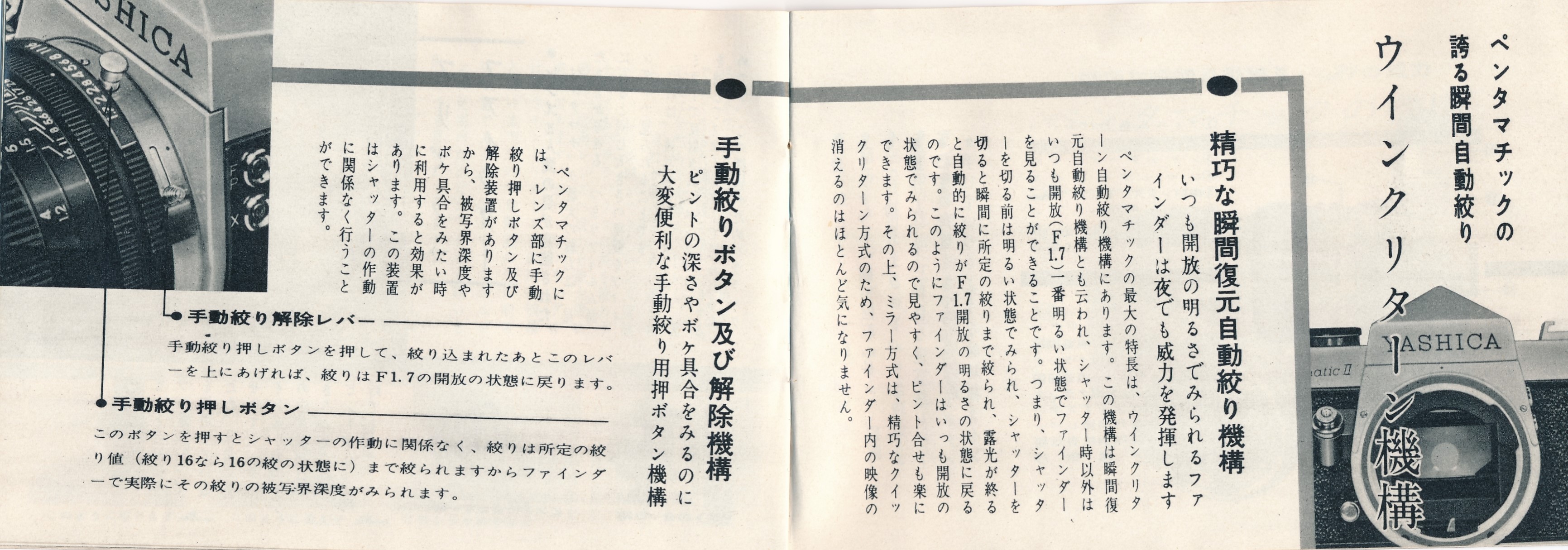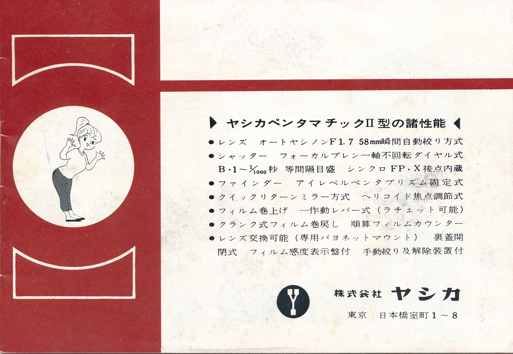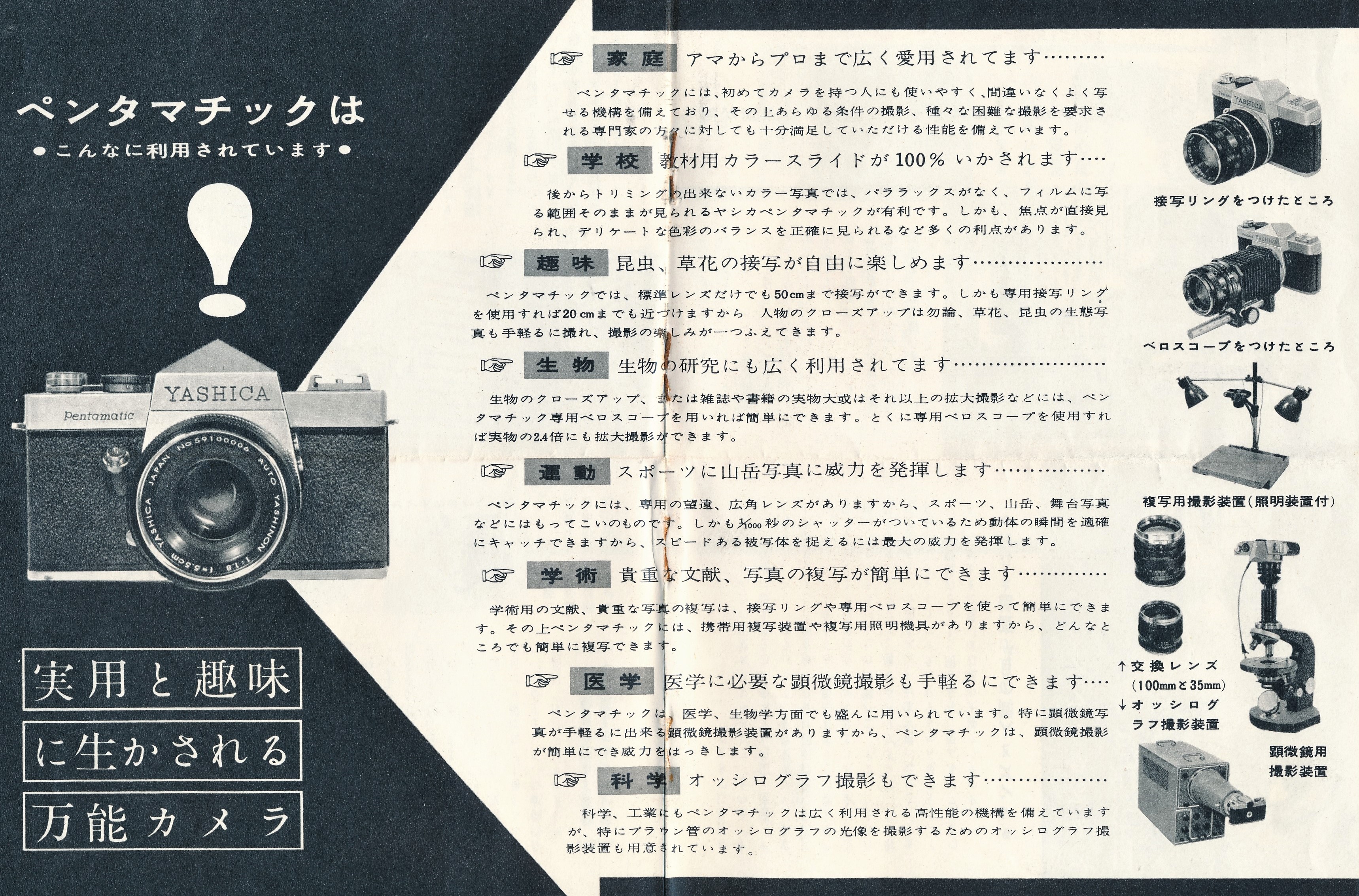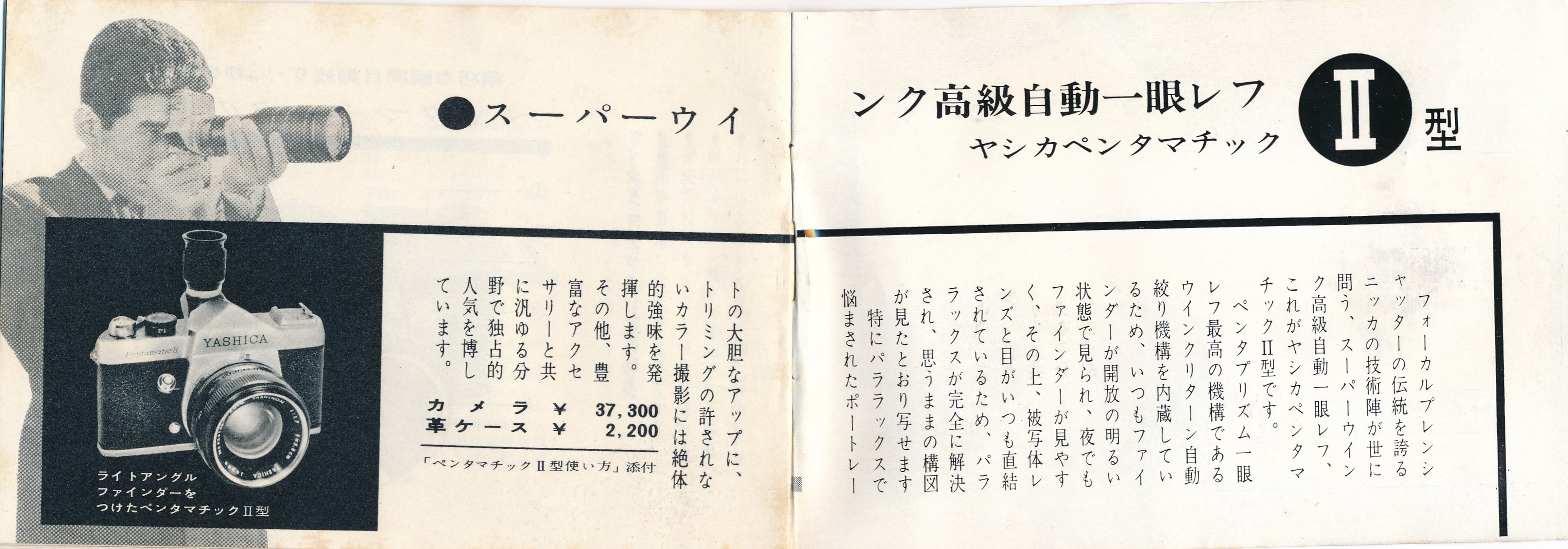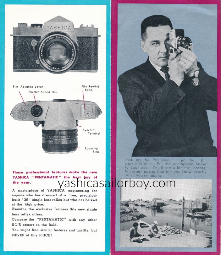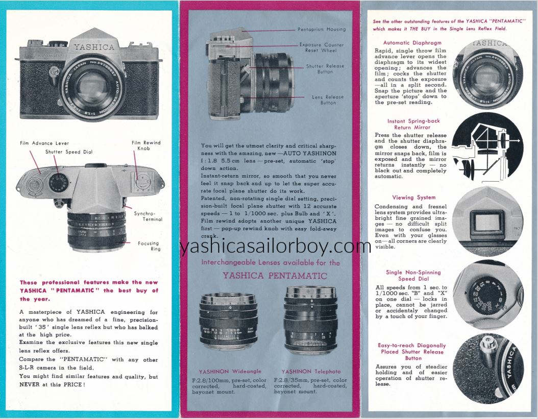 The Canonflex was released in May 1959. It was Canon’s first 35mm SLR. The Yashica Pentamatic was Yashica’s first 35mm SLR, and it was released in March 1960. It was designed with the help of the recently acquired Nicca Camera Company in 1958. It’s safe to say that without Nicca’s help after the acquisition, the Pentamatic wouldn’t have come to market when it did.