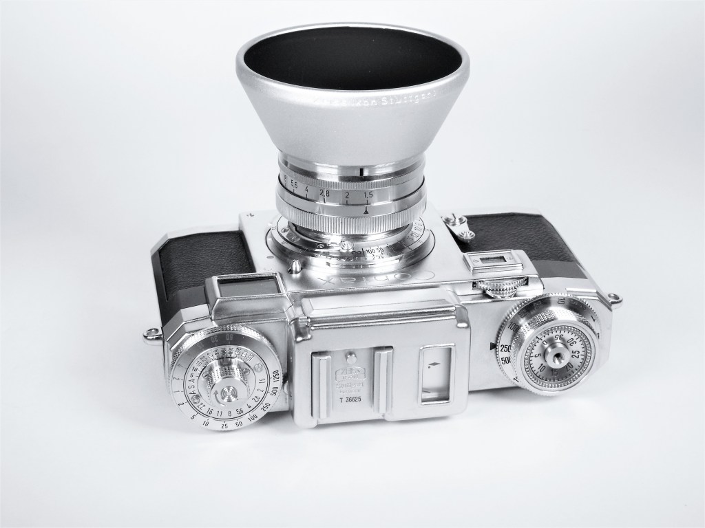 A quick search on eBay shows a nice selection of these available in all sorts of condition and states of operation. A recent set with body, lens, and box went for $450 (similar to mine) in working condition. I would think around $350 to $400 is reasonable for a clean example and having the box is always nice and in this case worth the $50. I’d give the Contax IIIa a chase factor of 6 – they’re out there so finding one isn’t a problem but finding a 70-year-old camera in full functioning condition is the hard part. Expect some issues that may need to be addressed and of course without service (CLA) little guarantee of continued function. It does make an awesome display camera amongst my other 35mm rangefinders so it’s got that going for it.