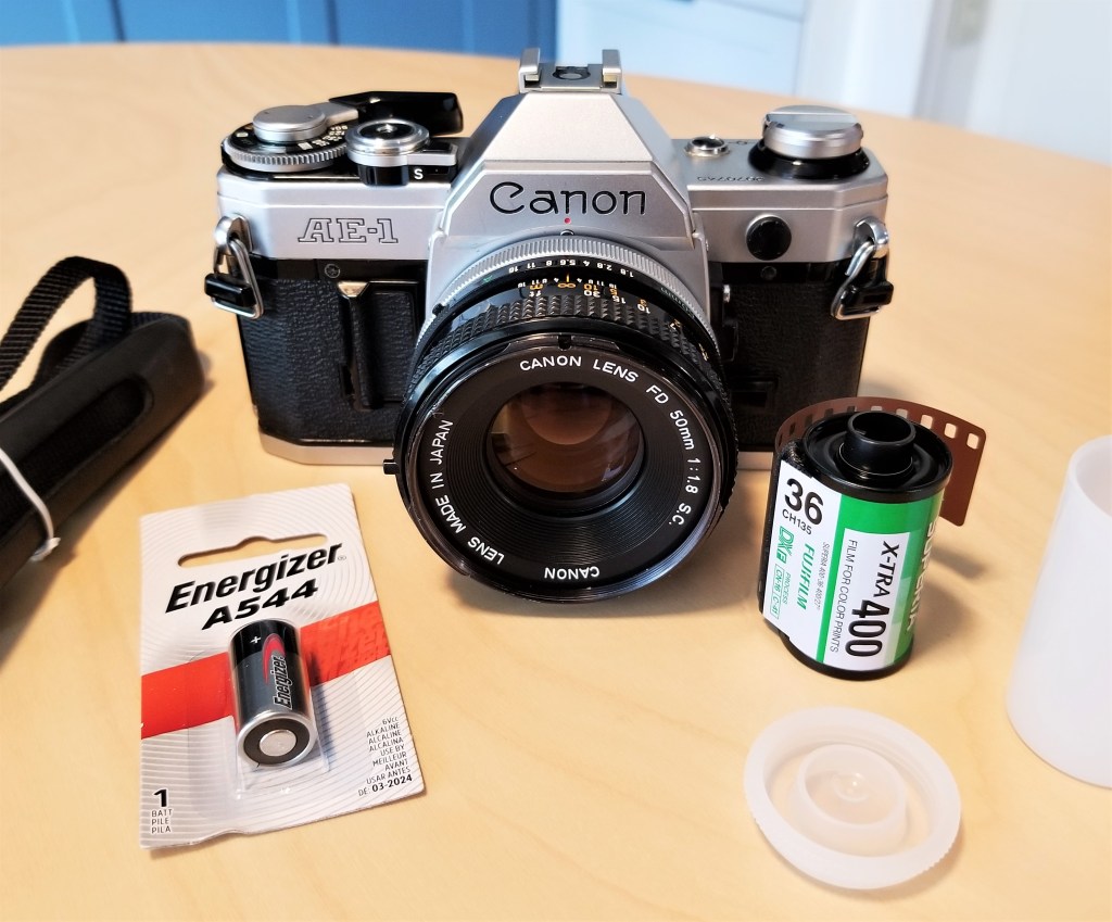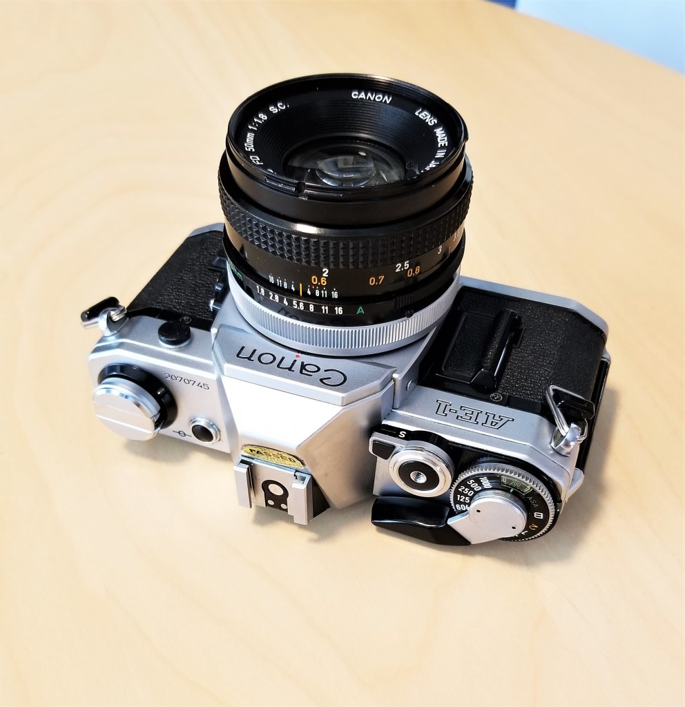 I knew the camera was untested (I asked the seller and they said that they didn’t have a battery) so I knew that going in. BTW, the 6v A544 batteries that power the A-1 are quite common and available in stores and online. After checking out the camera with a fresh battery I discovered that the light meter display wasn’t working. The shutter speeds sounded accurate but without knowing if the meter was responding I wouldn’t have been able to trust the camera in full auto mode. The camera also had the infamous Canon “squeal” that happens whenever the mirror assembly’s lubrication dries out over time and from sitting unused for long periods. The squeal is not caused by the shutter as some people believe.