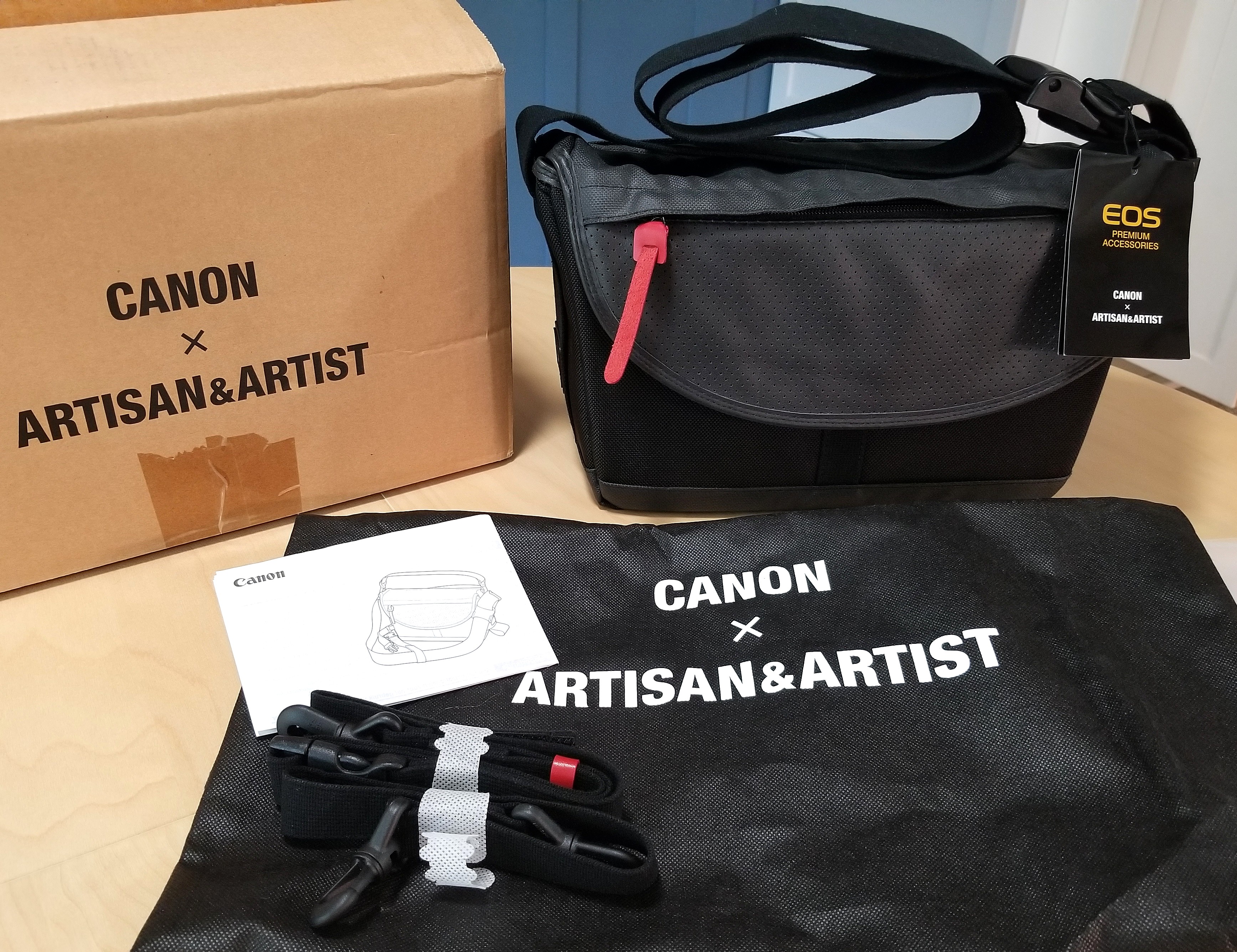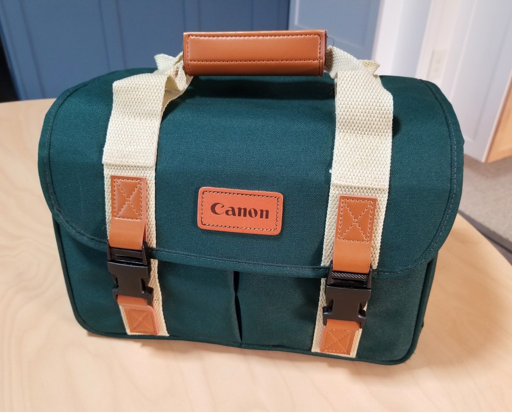 Classic Canon green and tan camera case.Unique collaboration between Artisan & Artist and Canon. The only one I’ve seen in years.ThinkTank and Canon CPS sling bag.
