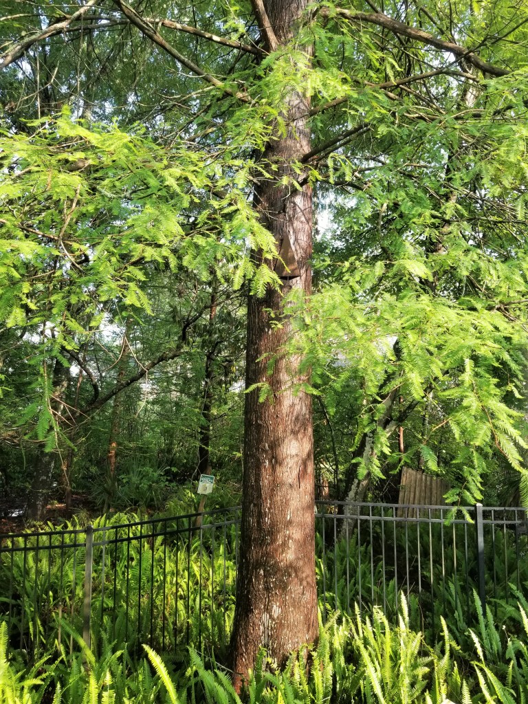 This beautiful bald cypress tree stands just outside one of my studio’s windows. The fence separates a natural wetland from the remainder of my property. I planted this tree when it was about 4 feet tall in 1992. Thirty years later it stands at about 40 feet.